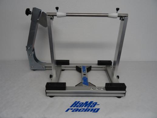 Die Wuchtbockstützen sind aus Aluminium-Profilen und die Welle Duchmesser 18mm